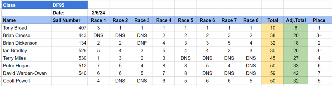 As we're now getting a healthy number of races in, and to allow the race officer to concentrate on running a race, a racer to drop out due to equipment failure or leave early, we've dropped the two worst results (on a 8-race day).